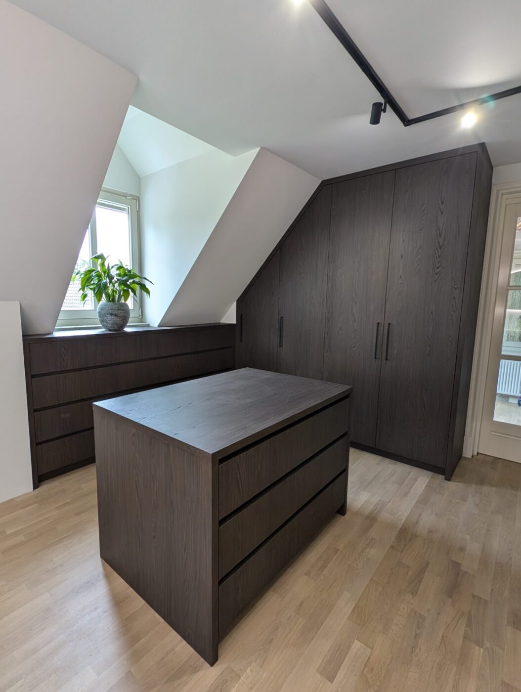 Bij Volmaak trekken we maatwerk door in het hele huis. We maakten onder andere een keuken, badmeubel, inloopkasten, werkruimte en tv-meubel, allemaal in één stijl, perfect op elkaar afgestemd.