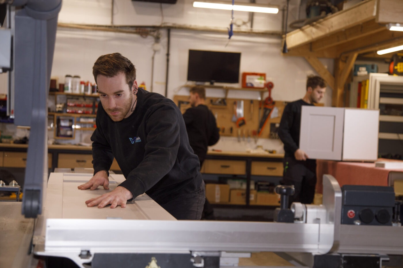 Wij werken met de beste machines, Homag CNC, Altendorf formaatzaag, Homag kantenlijmer, en ontwerpen in PaletteCAD voor een live 3D-preview. Maar het echte verschil zit in de mensen die ermee werken. Mensen die niet stoppen voordat het perfect is.